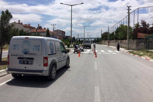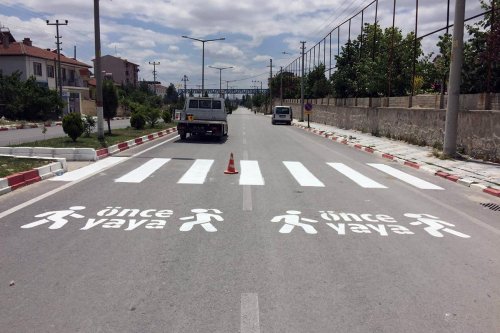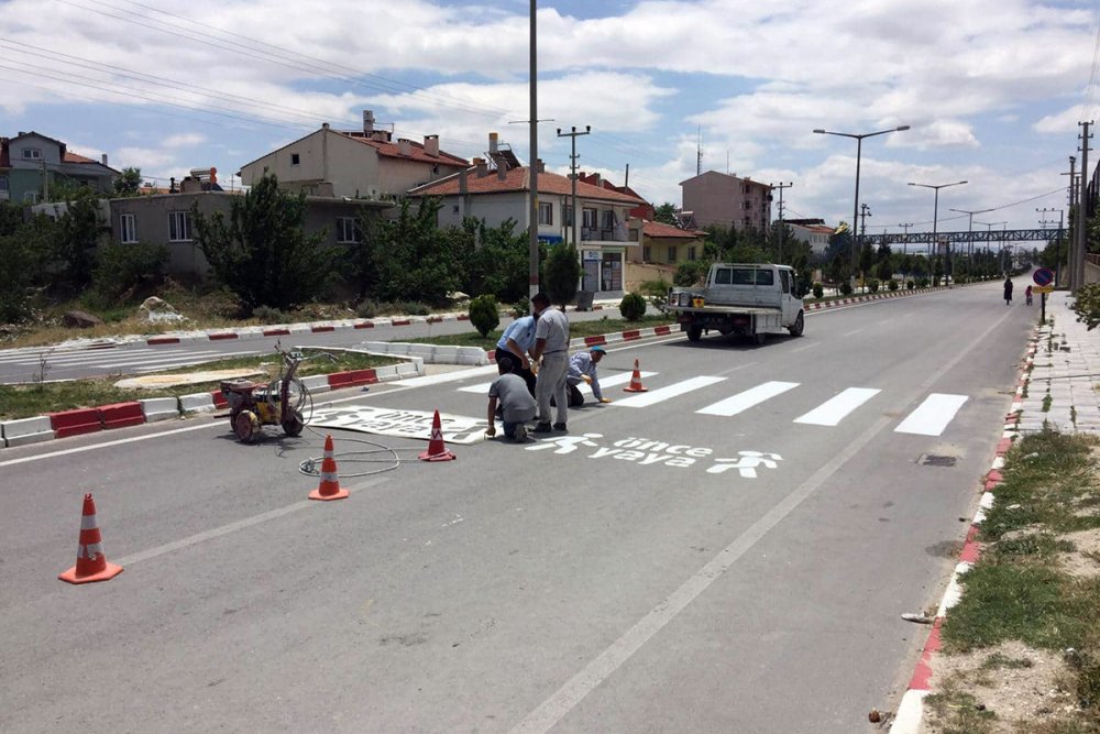 İscehisar Belediyesi ”Öncelik Hayatın Öncelik Yayanın” Projesi Kapsamında Yol Boyama Çalışması Yaptı