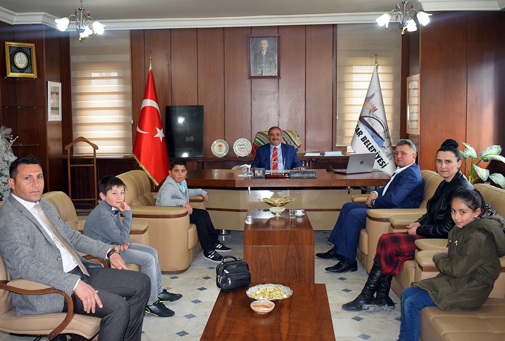 Karamehmet İlkokulu Müdürü Mehmet Akif Topaloğlu, Öğretmen Burcu Terzioğlu, öğrenciler Asya Gökmen ve Umut Öztürk’ün eşlik ettiği temsili başkan Mustafa Kaan Demirel, Başkanlık makamına oturunca öncelikle temizlik seferberliği başlatılmasını ev ve işyerinin etrafını temizleyene çiçek ile fidan hediye edilmesini söyledi. Karamehmet İlkokuluna kütüphane kurulması, okul bahçesine çeşme, toprak olan okul yolunun parke ile kaplanması ve mahallelere oyun parkları yapılması talimatını verdi. Eğitime ve okullara verdiği destek için Başkan Şahin’e teşekkür ederek, belediye çalışmaları hakkında bilgi aldı. Belediye Başkanımız Ahmet Şahin, ziyaretten duyduğu memnuniyeti dile getirerek çocukların bayramını kutladı. İscehisar Belediyesi olarak eğitime her konuda desteğe hazır olduklarını dile getirerek, öğrencilere hediye verdi.