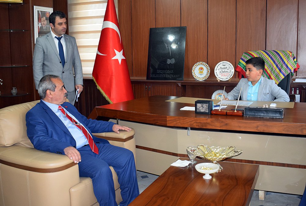 Belediye Başkanımız Ahmet Şahin, 23 Nisan Ulusal Egemenlik ve Çocuk Bayramı dolayısıyla koltuğunu Karamehmet ilkokulu 4. sınıf Öğrencisi Mustafa Kaan Demirel’e devretti.
