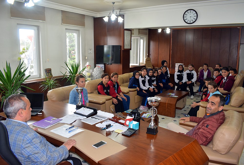 İlçemiz Mercan Ortaokulu Küçük Erkekler Voleybol takımı ile Küçük Kızlar Voleybol takımı, Okul Müdürü Oğuzhan Berk ve Beden Eğitimi Öğretmeni Burcu Atış Kaçar’la birlikte Belediye Başkanımız Ahmet Şahin’i makamında ziyaret etti.