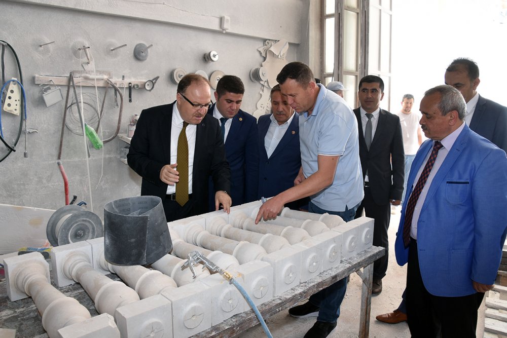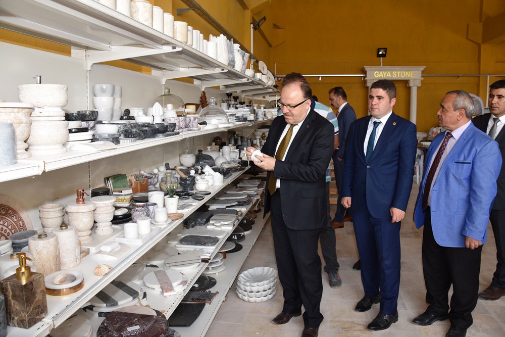 Vali Mustafa Tutulmaz başkanlığında İscehisar OSB’de yapılan toplantıya İlçe Kaymakamımız Ahmet Nuri Demir, Belediye Başkanımız Ahmet Şahin ve Müteşebbis Heyet Üyeleri katıldı. Toplanın açılış konuşmasını yapan Vali Mustafa Tutulmaz: “İlimiz ve ilçelerimizin kalkınması için lokomotifi konumunda olan Organize Sanayi Bölgelerimizin çalışmalarını yakından takip etmekteyim. Çünkü OSB’lerde yürütülen çalışmalar ve faaliyetler işadamlarımızı, çalışanları, ekonomiyi, kalkınmayı doğal olarak ilimizi ve ülkemizi etkilemektedir. Hiçbir Organize Sanayi Bölgemizi diğerlerinden ayrı gözetmeksizin onların büyümesini, daha çok işadamı, müteşebbis ve girişimcilere hitap etmesi için Valilik olarak elimizden gelen gayreti göstermekteyiz. Bu kapsamda İscehisar Mermer Organize Sanayi Bölgesinin çalışmalarını da takip ediyor ve bu çalışmaları önemsiyorum. Mevcutta olan OSB’lerini de daha iyi konuma getirmek için çalışmalarımızı sürdürdüğümüzü belirtirken bu anlamda gerçekleştirdiğimiz toplantının hayırlara vesile olmasını temenni ederim.”dedi. Gündem maddelerinin görüşülmesiyle devam eden toplantısı karşılıklı bilgi alışverişinde bulunmasıyla sona erdi. Toplantı sonrası inşaatı devam eden Mermer Akademisi Eğitim Merkezi ile İscehisar Küçük Sanayi Sitesinde bulunan ve el işçiliği ile sanatsal ürünler üreten atölyelerde de incelemelerde bulunan Vali Mustafa Tutulmaz, atölye sahiplerinden üretilen ürünler ile pazarlaması hakkında bilgiler alarak hayırlı işler ve bol kazançlar temennisinde bulundu.