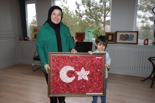 İscehisar Anaokulu öğrencisi Eymen Mermer, Okul Müdürü Rıfat Çelebi ve Okul Öncesi...