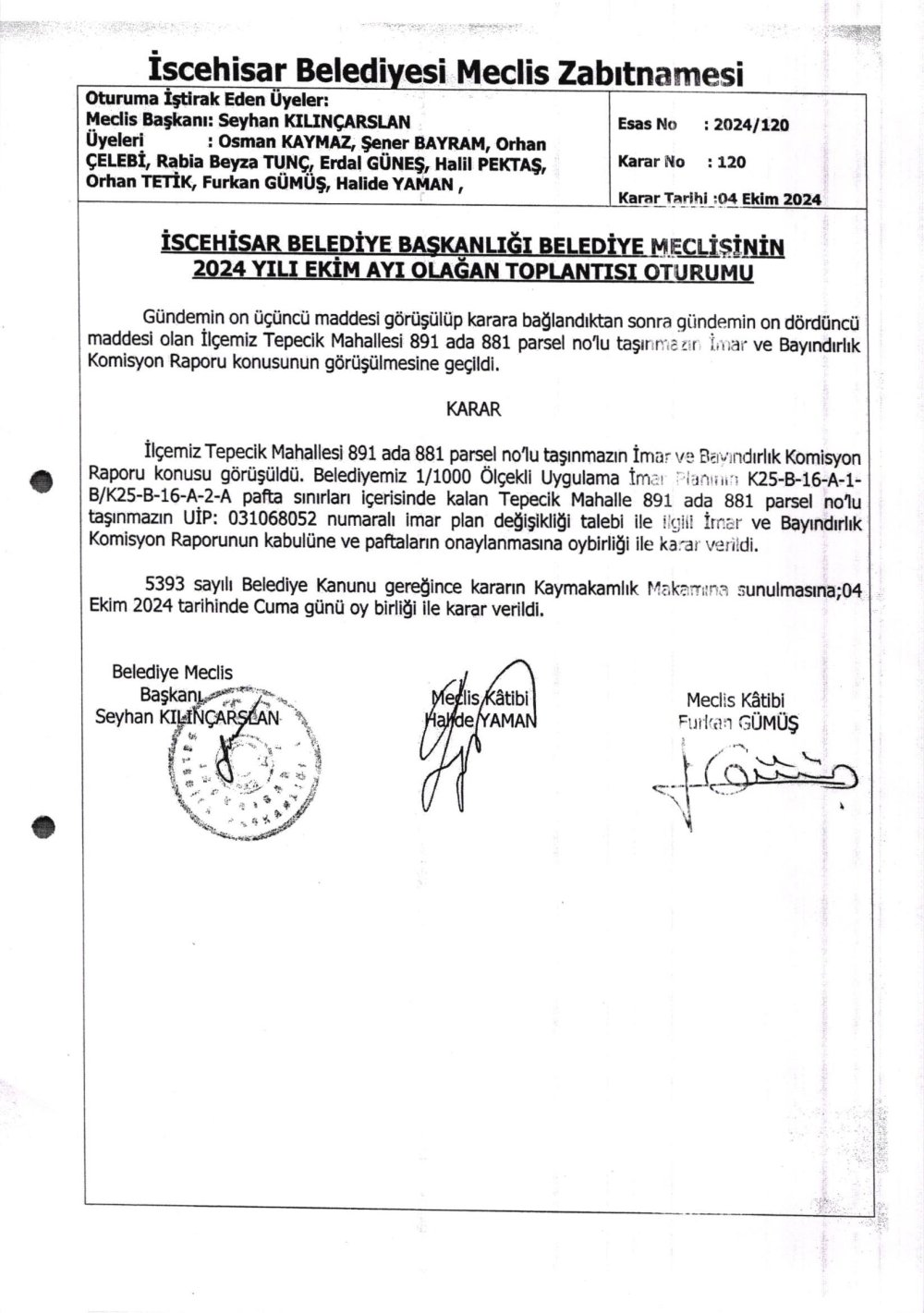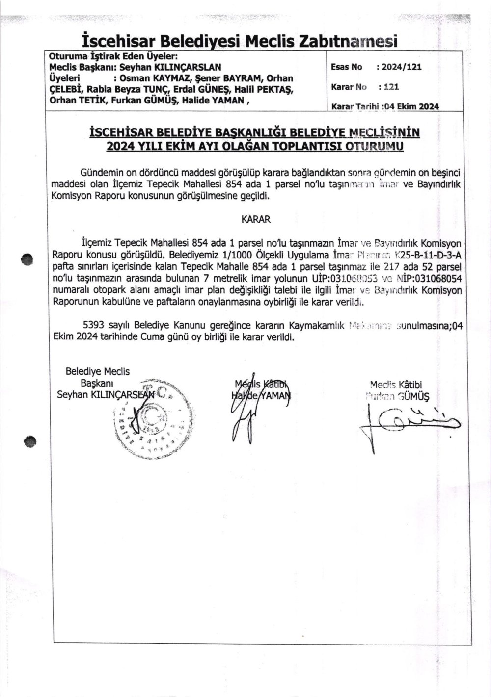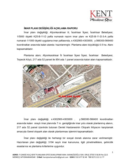 854 Ada 1 Parsel İmar Plan Değişikliği