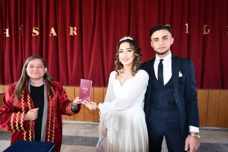 Belediye düğün salonunda gerçekleşen nikah töreninde Furkan Şen ile Nurangül Türk çifti atılan imzalarla hayatlarını birleştirdi.