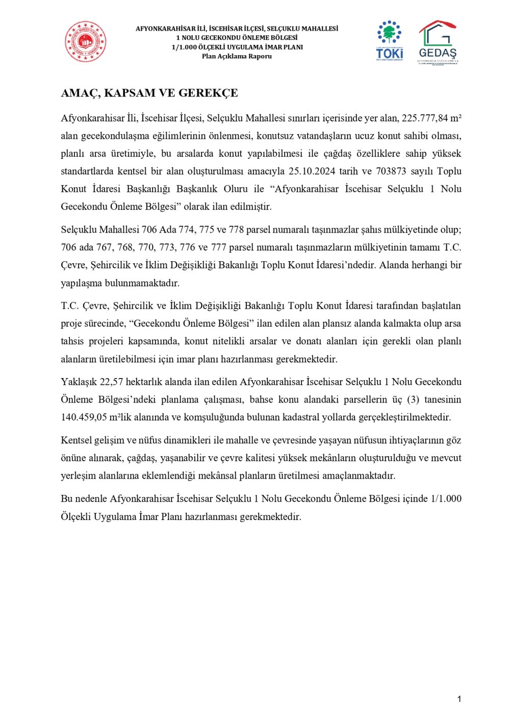 SELÇUKLU MAHALLESİ 1 NOLU GECEKONDU ÖNLEME BÖLGESİ