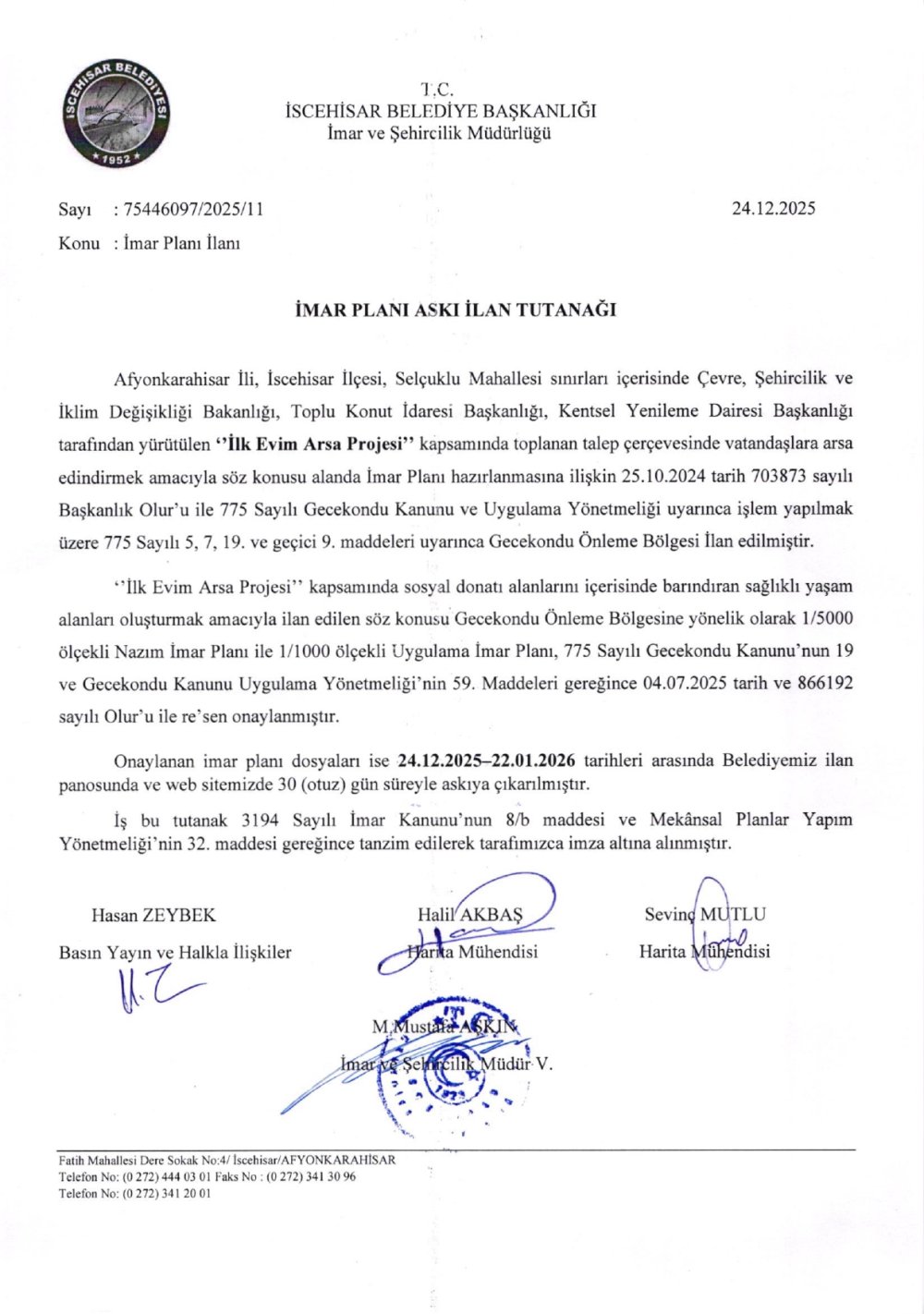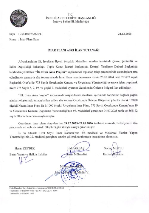 İMAR PLANI DEĞİŞİKLİĞİ İLANLARI