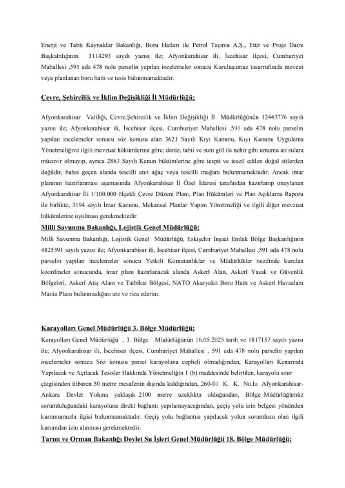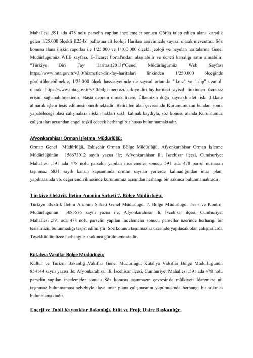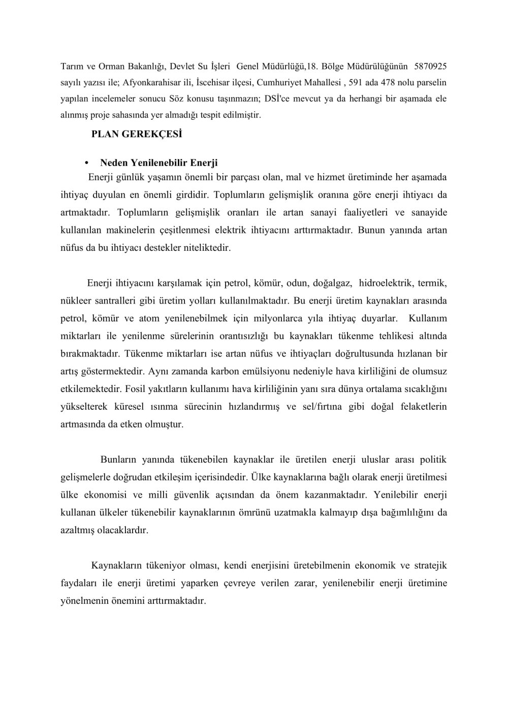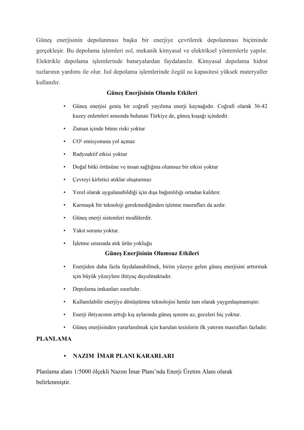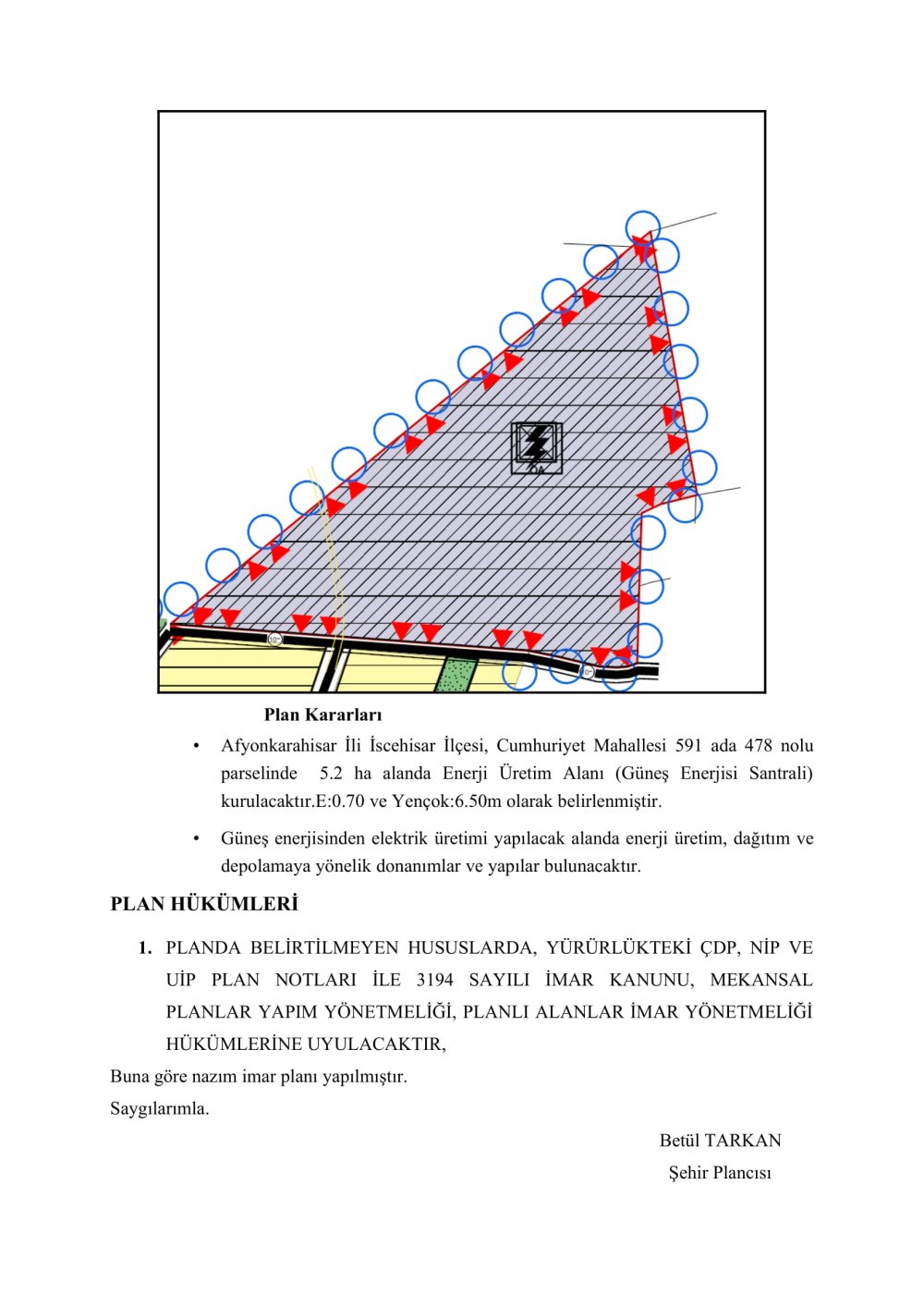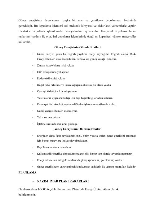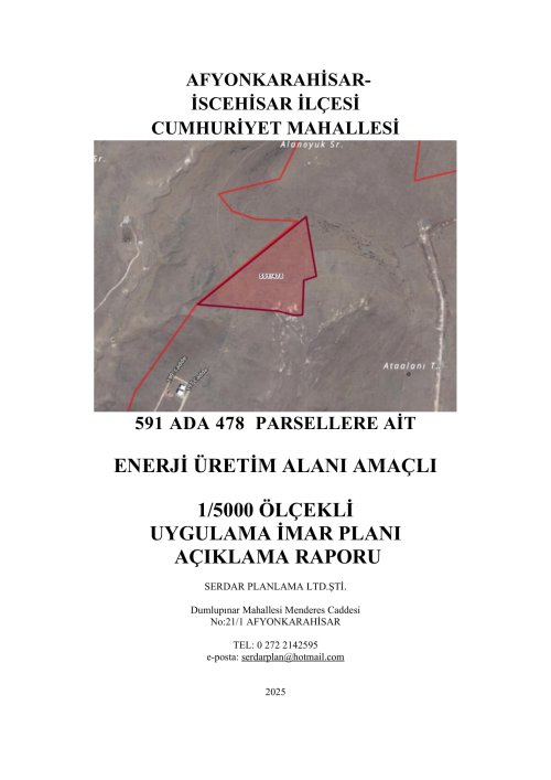 YENİLENEBİLİR ENERJİ KAYNAKLARINA DAYALI ÜRETİM TESİS ALANI AMAÇLI 1/5000 ÖLÇEKLİ NAZIM İMAR PLANI VE 1/1000 ÖLÇEKLİ UYGULAMA İMAR PLANI