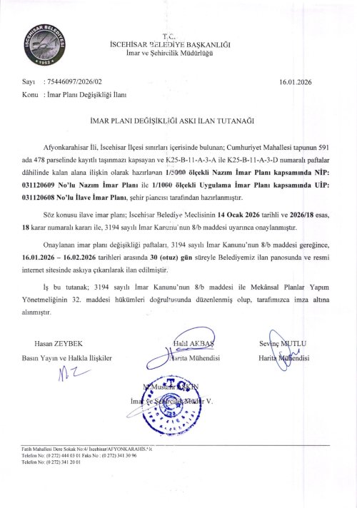 İMAR PLANI DEĞİŞİKLİĞİ İLANLARI