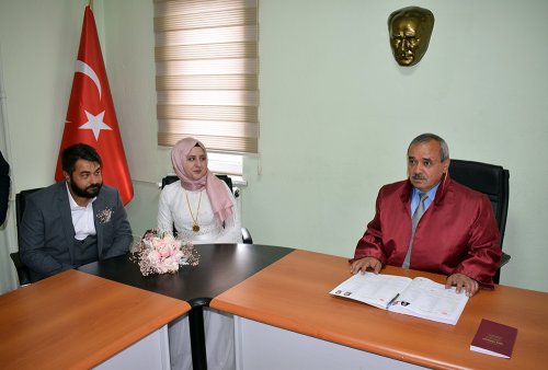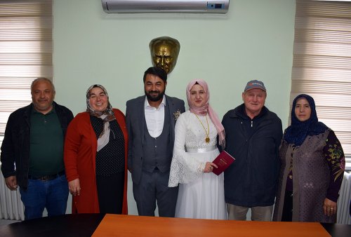 Genç çiftin nikahını Belediye Başkanımız Ahmet ŞAHİN kıyarken şahitliklerini ise Mustafa AZGIN ile Emine KÖSE yaptı. Evlilik Cüzdanını gelin hanıma veren Başkan Şahin, yeni evli çifte ömür boyu mutluluk temennisinde bulundu.