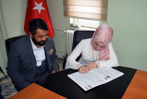 Belediyemiz Meclis salonunda gerçekleşen nikah töreninde Muhammed Salih KILINÇARSLAN ile Sema ERKAN çifti atılan imzalarla hayatlarını birleştirdi.