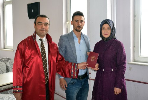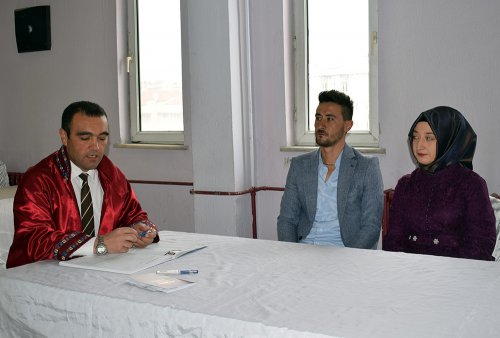 Genç çiftin nikahını Evlendirme Memurumuz Faruk Memiş kıyarken şahitliklerini ise Ömer Faruk Şahin, Sultan Şahin ve Halime Çetinkaya yaptı. Evlilik Cüzdanını gelin hanıma veren Memiş , yeni evli çifte ömür boyu mutluluk temennisinde bulundu.
