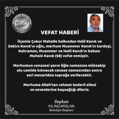 İlçemiz Çukur Mahalle halkından Halil Kanık ve Zakire Kanık’ın oğlu, merhum Muammer...