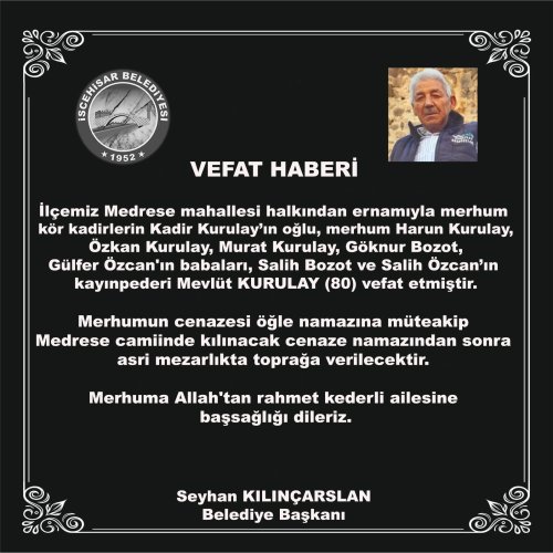 İlçemiz Medrese mahallesi halkından ernamıyla merhum kör kadirlerin Kadir Kurulay’ın...