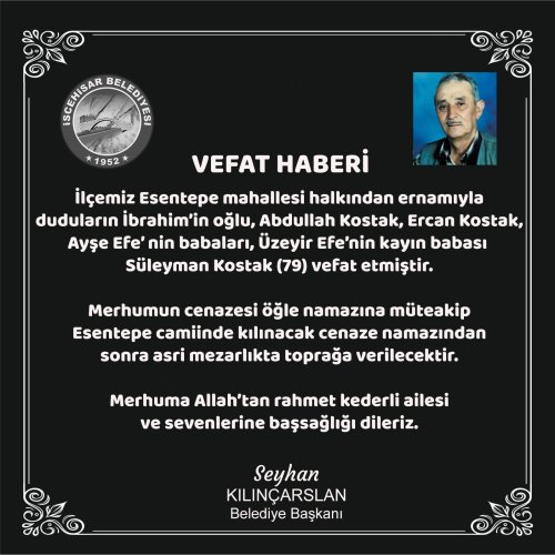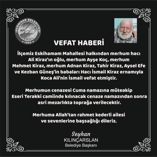 İlçemiz Eskihamam Mahallesi halkından merhum hacı Ali Kiraz’ın oğlu, merhum Ayşe Koç,...