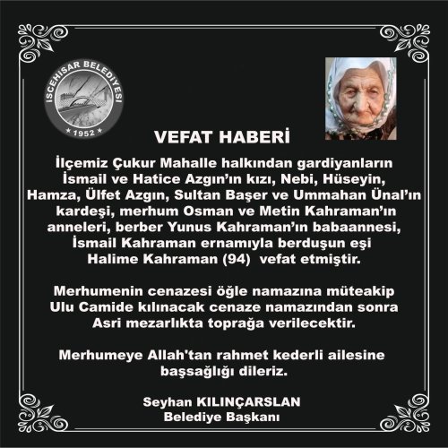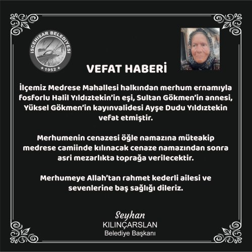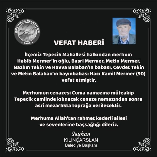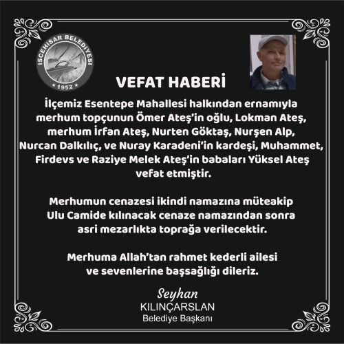 İlçemiz Medrese Mahallesi halkından merhum ernamıyla fosforlu Halil Yıldıztekin’in...