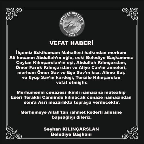 İlçemiz Eskihamam Mahallesi halkından merhum usta Satılmış’ın oğlu, Baki, Yusuf,...