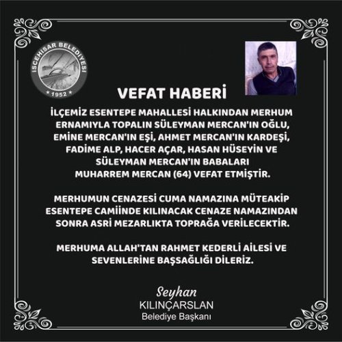 İLÇEMİZ ESENTEPE MAHALLESİ HALKINDAN MERHUM ERNAMIYLA TOPALIN SÜLEYMAN MERCAN'IN OĞLU,...