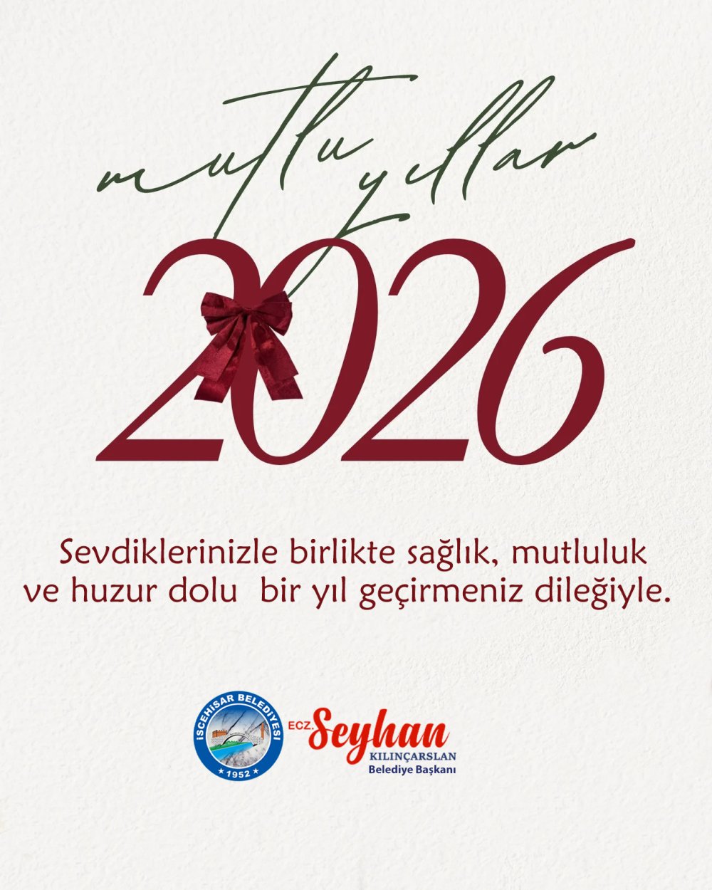 Bu duygu ve düşüncelerle İscehisar’ımıza hizmet noktasında büyük bir özveri ve gayret içerisinde çalışmalarını sürdüren mesai arkadaşlarım ve hizmetlerin en iyisine layık olan siz hemşehrilerim yeni yılını en içten dileklerimle kutluyor, 2026 yılının ülkemize, tüm insanlığa sağlık, huzur, barış ve mutluluk getirmesini temenni ediyorum.”