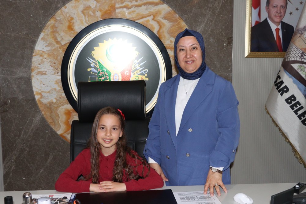 Belediye Başkanımız Seyhan Kılınçarslan, 23 Nisan Ulusal Egemenlik ve Çocuk Bayramı kutlamaları kapsamında temsili olarak koltuğunu Fatih İlkokulu dördüncü sınıf öğrencileri Sümeyye Ravza Benli ile Abdullah Sarı’ya devretti.