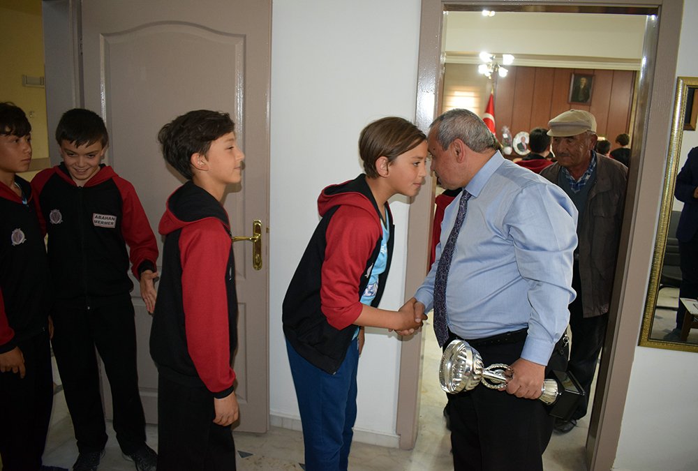Mercan Ortaokulu Küçük Erkekler Voleybol Takımı Afyonkarahisar’da gerçekleştirilen ve 14 takımın katıldığı Voleybol turnuvasında bütün rakiplerini mağlup etti. Final müsabakasında Sandıklı Mustafa Kemal Ortaokulunu 2 – 0 yenen Mercan Ortaokulu il şampiyonu oldu. Mercan Ortaokulu Küçük Kızlar Voleybol takımı da 22 takım arasından Afyonkarahisar üçüncüsü olarak ilçemize 3.’lük kupasını kazandırdı. Belediye Başkanımız Ahmet Şahin; “ İlçemizi en iyi şekilde temsil ederek il şampiyonu olan, bizlere bu sevinci yaşatan öğrencilerimizi ve öğretmenlerini tebrik ediyorum. Şampiyon öğrencilerimize söz verdiğimiz şekilde forma ve ayakkabı hediye edeceğiz. İscehisar Belediyesi olarak eğitime, spora ve gençlere olan desteklerimiz her zaman devam edecek. ”dedi. Başkan Şahin, ziyaretine gelen tüm öğrencilere hediye verdi.