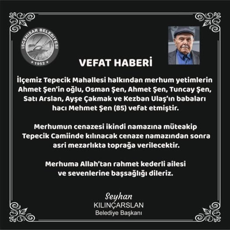 Merhumun cenazesi ikindi namazına müteakip Tepecik Camiinde kılınacak cenaze namazından sonra asri mezarlıkta toprağa verilecektir.