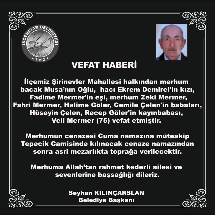 Merhumun cenazesi Cuma namazına müteakip Tepecik Camisinde kılınacak cenaze namazından sonra asri mezarlıkta toprağa verilecektir.