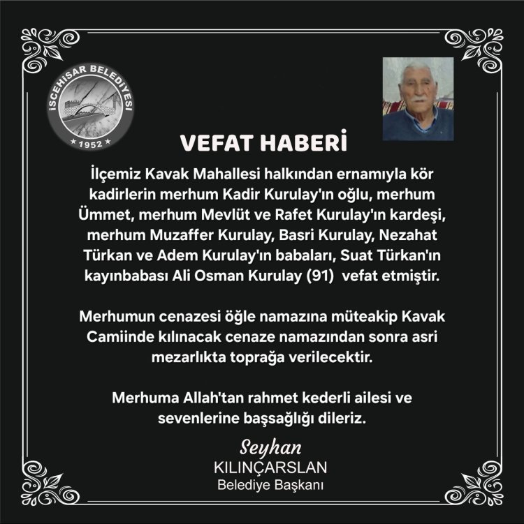 Merhumun cenazesi öğle namazına müteakip Kavak Camiinde kılınacak cenaze namazından sonra asri mezarlıkta toprağa verilecektir.