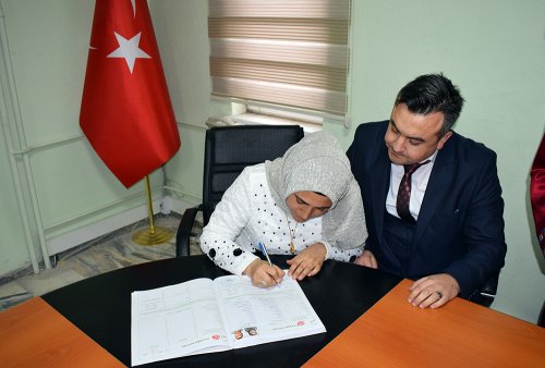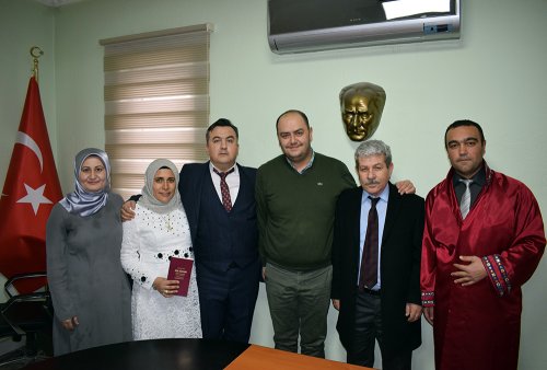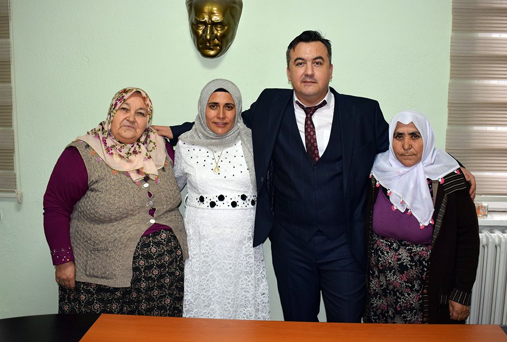 Genç çiftin nikahını Evlendirme Memurumuz Faruk MEMİŞ kıyarken şahitliklerini ise İlçe Nüfus Müdürü Cemalettin SİVRİ, Devlet Hastanesi Başhekimi İlker Ahmet ÇINAR ve Sevgi ARIK yaptı. Evlilik Cüzdanını gelin hanıma veren Memiş , yeni evli çifte ömür boyu mutluluk temennisinde bulundu.